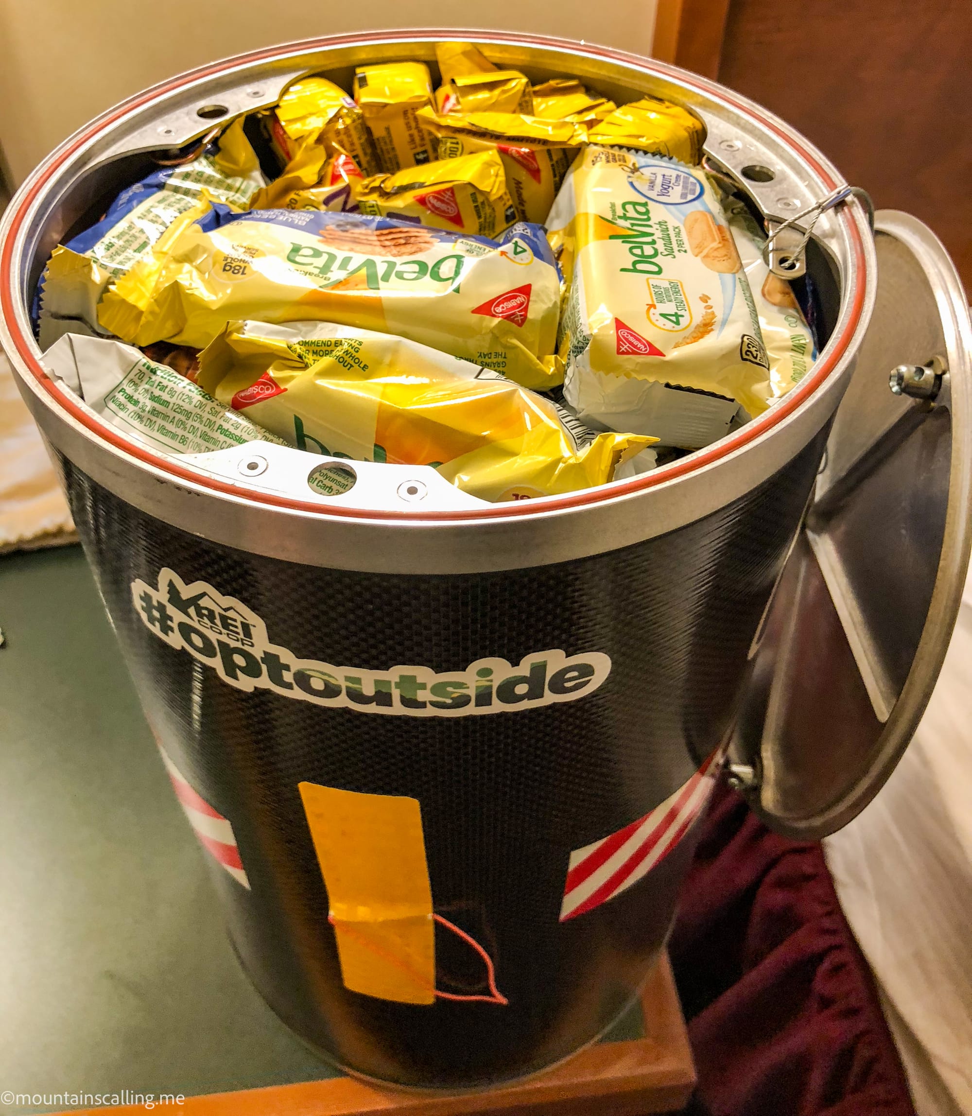 All food and snacks. All beverages other than plain water. Trash, wrappers, and food-contaminated packaging. Toothpaste and toothbrush. Sunscreen and lip balm. Bug spray and DEET products. Deodorant. Hand sanitizer. Medications with a scent.
